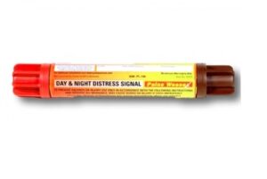 Compact, easy to operate, handheld distress signal. Consisting of a red flare at one end and an orange smoke at